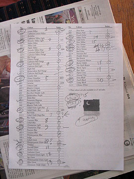 image on left As I tested each color, I marked the colors from the list. while following this procedure, I realized the colors were not in numerical order but rather setup from warm to cool. | ||||||||||||||||||||||||||||||||||||||||||||||||||||||||||||||||||||||||||||||||||