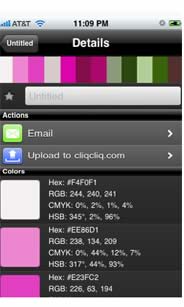 the colorjack widget is a mini-version of the sphere application. It can help you design your website, redecorate your home, or choose your outfit in the morning. sphere uses color theory in order to provide you with visually appealing colors. sample on left: colorjack widget sphere: color theory. still in beta testing, color galaxy is a online color library visualize. colorjack amassed a collection of 27 color databases. Everything from Crayola’s historical set of standard crayons, to Munsell’s scientific renotational data. Huge collection of named colors! sample of left: colorjack create a palette of colors you like, and then convert the finished product between RGB, HSB, Grayscale as well as integer and floating point scales. . . . extract colors from pictures taken with the iPhone, email palettes . . . generate full-screen color previews and . . . more. $2.99 sample on left: cliq cliq colors for iPhone, iPod touch, and iPad.