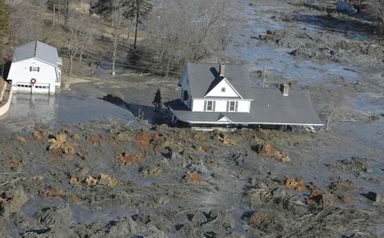 The above video still is a shocking helicopter-level Environmental Spill Disaster Devastates Tennessee; By Matthew McDermott, TreeHugger. Posted December 25, 2008. Approximately 500 million gallons of coal ash sludge has broken through a holding pond at a coal-fired plane. An environmental disaster of epic proportions has occurred in Tennessee. Monday night, 2.6 million cubic yards (the equivalent of 525.2 million gallons, 48 times more than the Exxon Valdez spill by volume) of coal ash sludge broke through a dike of a 40-acre holding pond at TVA's Kingston coal-fired power plant covering 400 acres up to six feet deep, damaging 12 homes and wrecking a train. According to the EPA the cleanup will take at least several weeks, but could take years. Officials also said that the magnitude of this spill is such that the entire area could be declared a federal superfund site. Toxic Sludge Got Into Tributary of Chattanooga Water Supply Apart from the immediate physical damage, the issue is what toxic substances are in that sludge: Mercury, arsenic, lead, beryllium, cadmium. Though officials said the amounts of these poisons in the sludge could not be determined on Monday, they could (at the mild end) irritate skin or trigger allergies or (longer term) cause cancer or neurological problems. To see full article, go to www.alternet.org/environment |